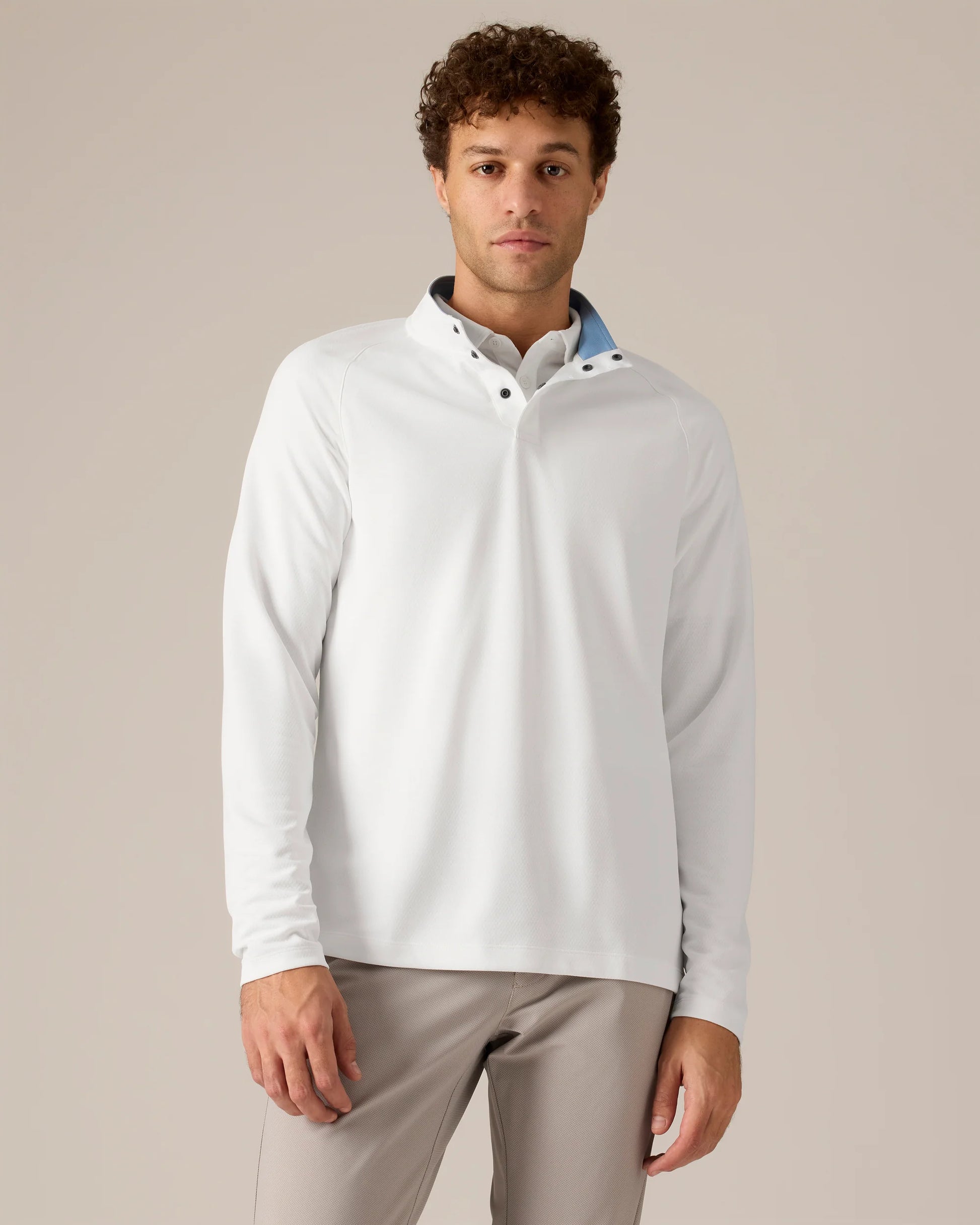 The Clubhouse Pullover is meant to be a lightweight layer that breathes well, dries quickly and keeps you covered from the back 9 to the bar. Made with our signature glacier cooling technology, this astonishing fabric is versatile for many different temperatures and boasts UPF 50+ sun protection. The hidden snap front closure allows for adjustable ventilation, the saddle shoulder seam is made for a full range of motion and subtle