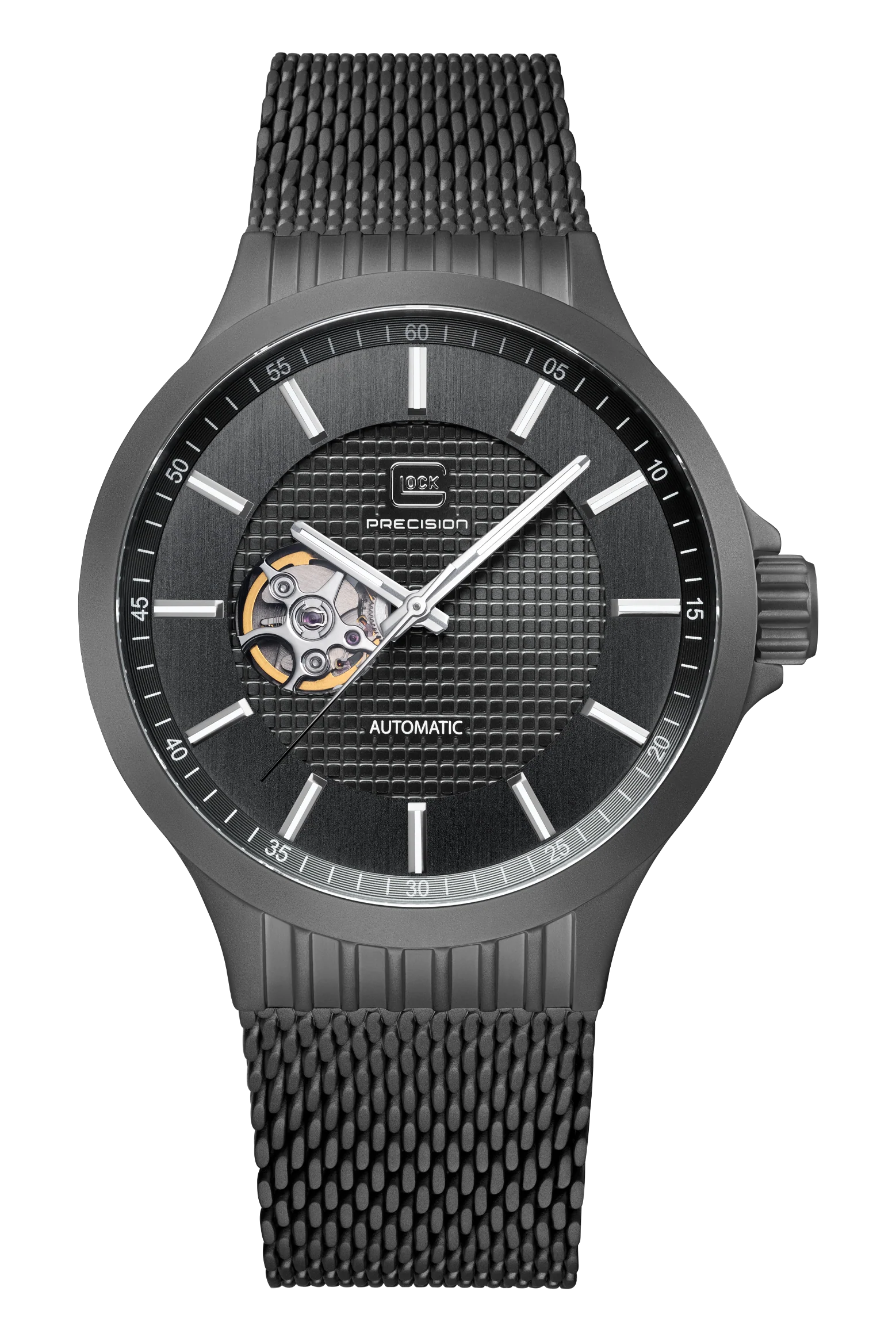 Encased in a sandblasted stainless steel case and featuring a deep black dial, this watch highlights hands and indices with Swiss Super-LumiNova®. The open heart feature on the dial hints at the intricate mechanics of the watch. Powered by a high-quality automatic movement and boasting a 10 ATM water-resistance rating, this timepiece has the precision and elegance to impress.