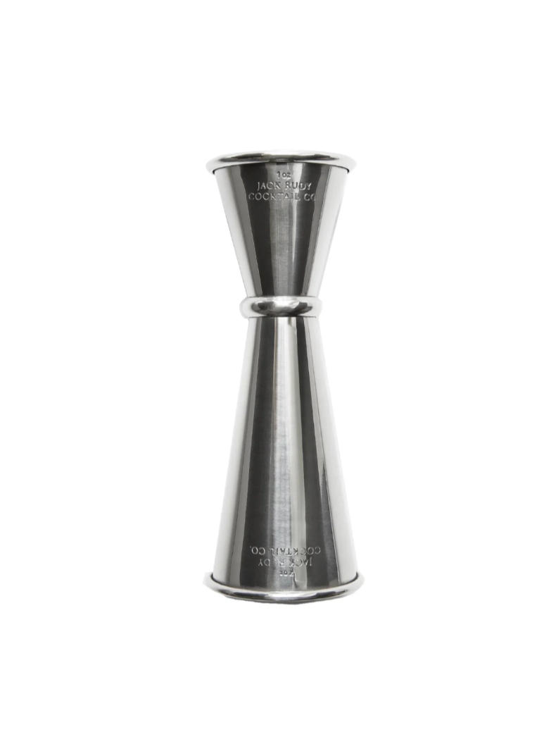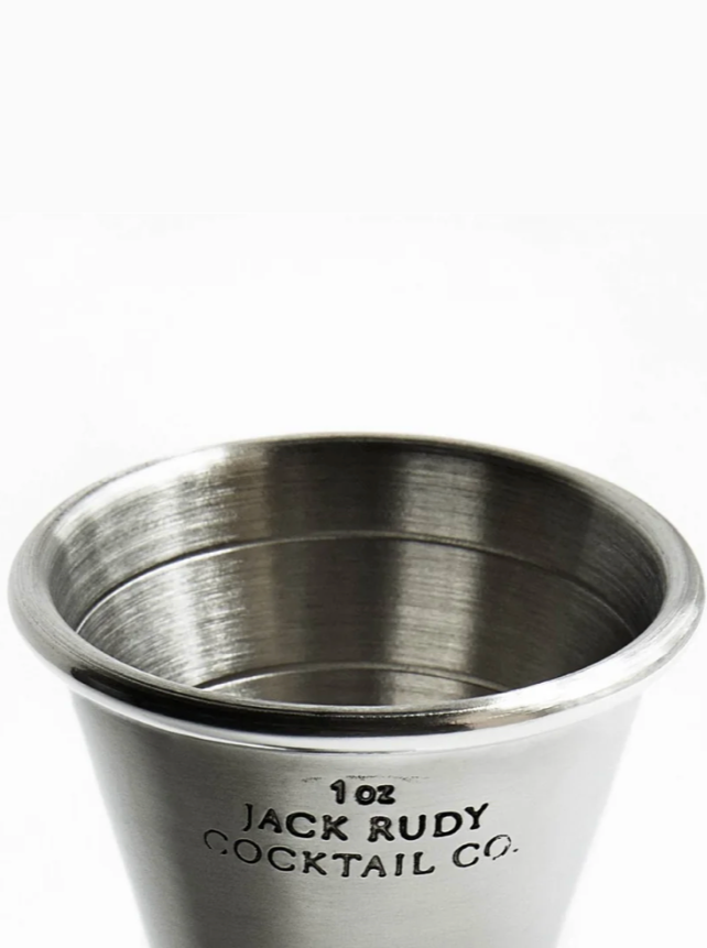 Our custom jigger, engraved with the elegant Jack Rudy Cocktail Co. mark, is graduated on both sides, allowing the user to accurately recreate a number of cocktails from cocktail books or our website.